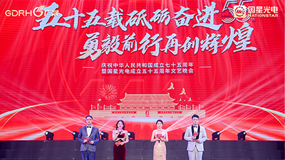 为热烈庆祝中华人民共和国成立七十五周年暨国星光电成立五十五周年,9月27日晚,国星光电“五十五载砥砺奋进·勇毅前行再创辉煌 ”文艺晚会在佛山金马剧院举行。